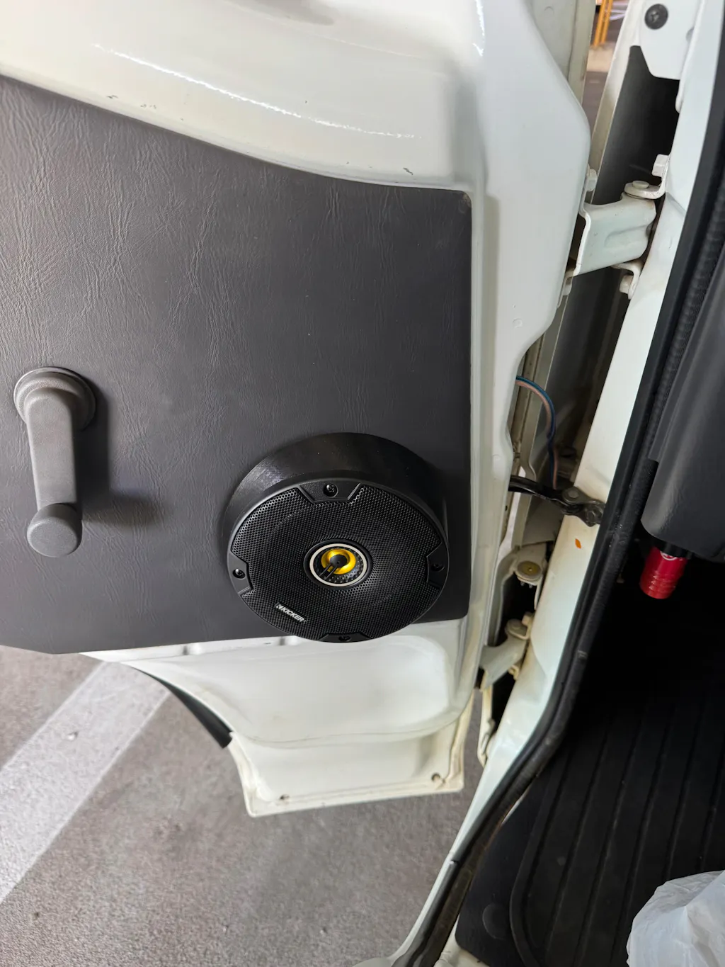 This kit requires some DIY, two 7mm holes need to be drilled in each door to mount the speaker rings. The door trim panels will need a hole cut in them as well, and wires need to be routed through the door jambs with the provided boots.
