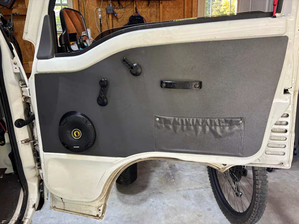 Note: This kit is meant to fit the flat door panels as pictured and in the instructional video. If your Sambar has a molded door panel, this kit will not fit as expected.